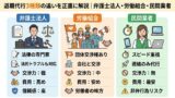 弁護士法(第72条)では、弁護士資格を持たない者が法律事務(交渉を含む)を行うことを禁じています。民間業者が「有給交渉可能」「会社と交渉します」と謳うケースは、非弁行為の疑いがあります。2025年10月には民間業者の一社が弁護士法違反の疑いで家宅捜索を受けた事例が報道されており、業界全体で問題視されています。民間業者を利用する場合は、「退職の意思を伝える窓口」としての役割に限定されていることを理解した上で選んでください。
