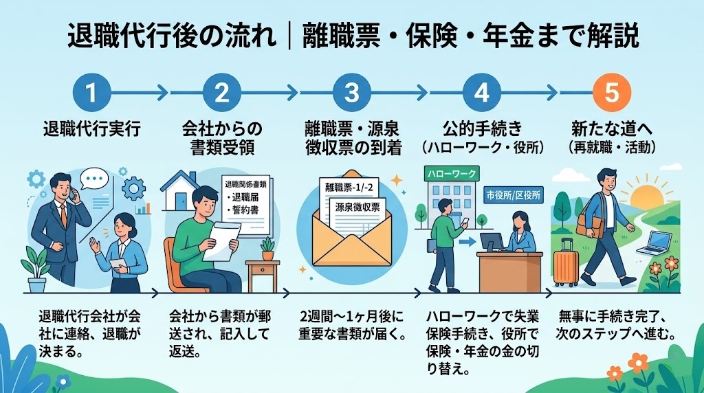 離職票はいつ届くのか。健康保険はどう切り替えるのか。失業給付はいつから受け取れるのか。退職代行サービスは「辞める」ところまでは動いてくれますが、退職後の生活手続きは自分でやる必要があります。