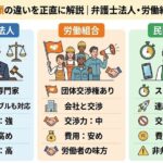 ※民間業者が「交渉可能」と謳うケースは弁護士法違反(非弁行為)の疑いがあります。2025年10月には民間の退職代行業者が弁護士法違反疑いで家宅捜索を受けた事例も報じられています。民間業者に依頼する際は、業務範囲を事前に必ず確認してください。