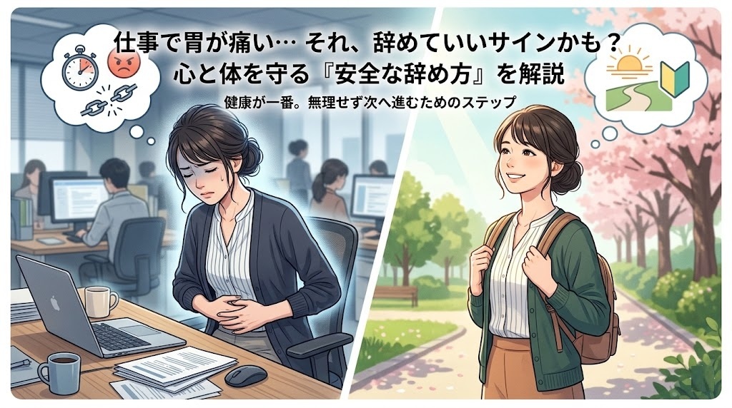 この記事では、仕事のストレスで胃が痛くなるメカニズムと、「辞めていいのか?」という判断基準、そして退職を切り出せない場合の具体的な手段まで整理します。
